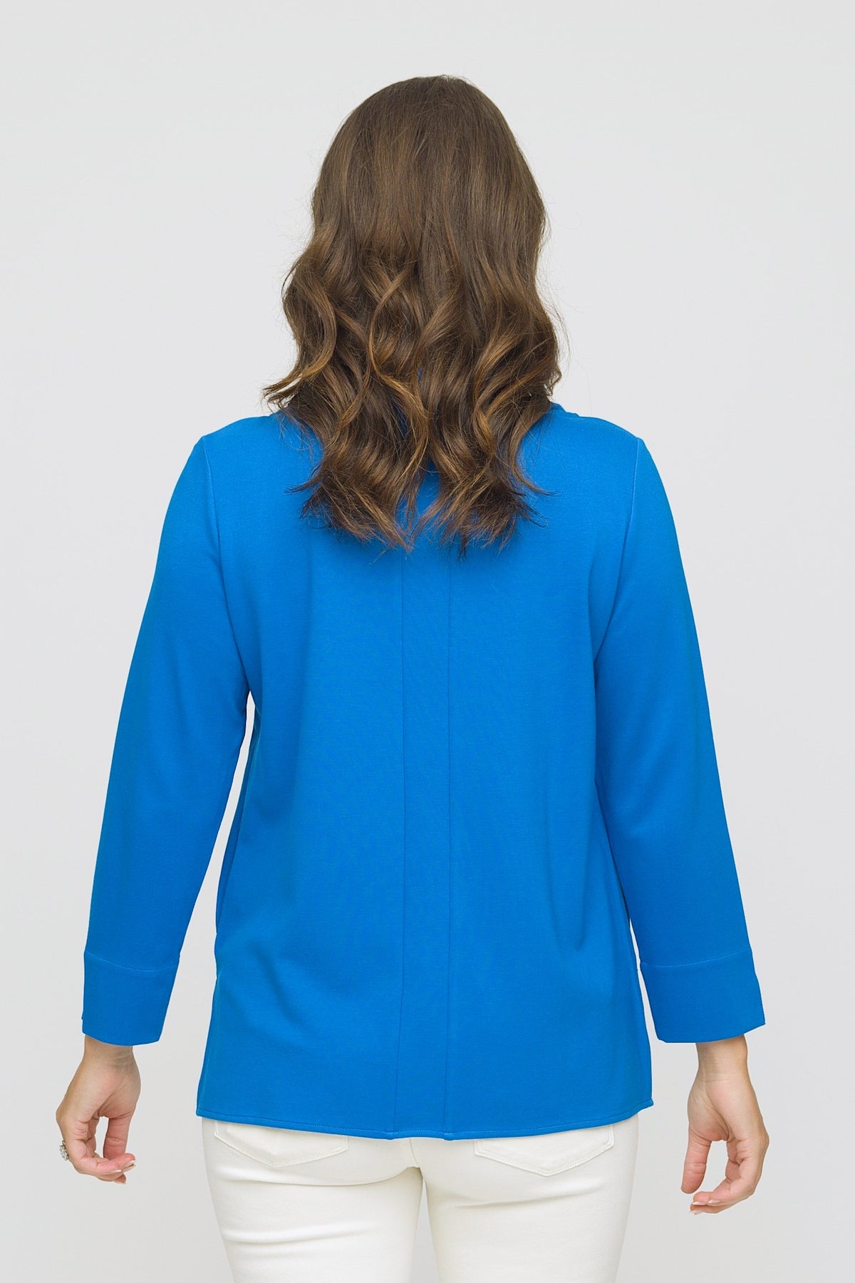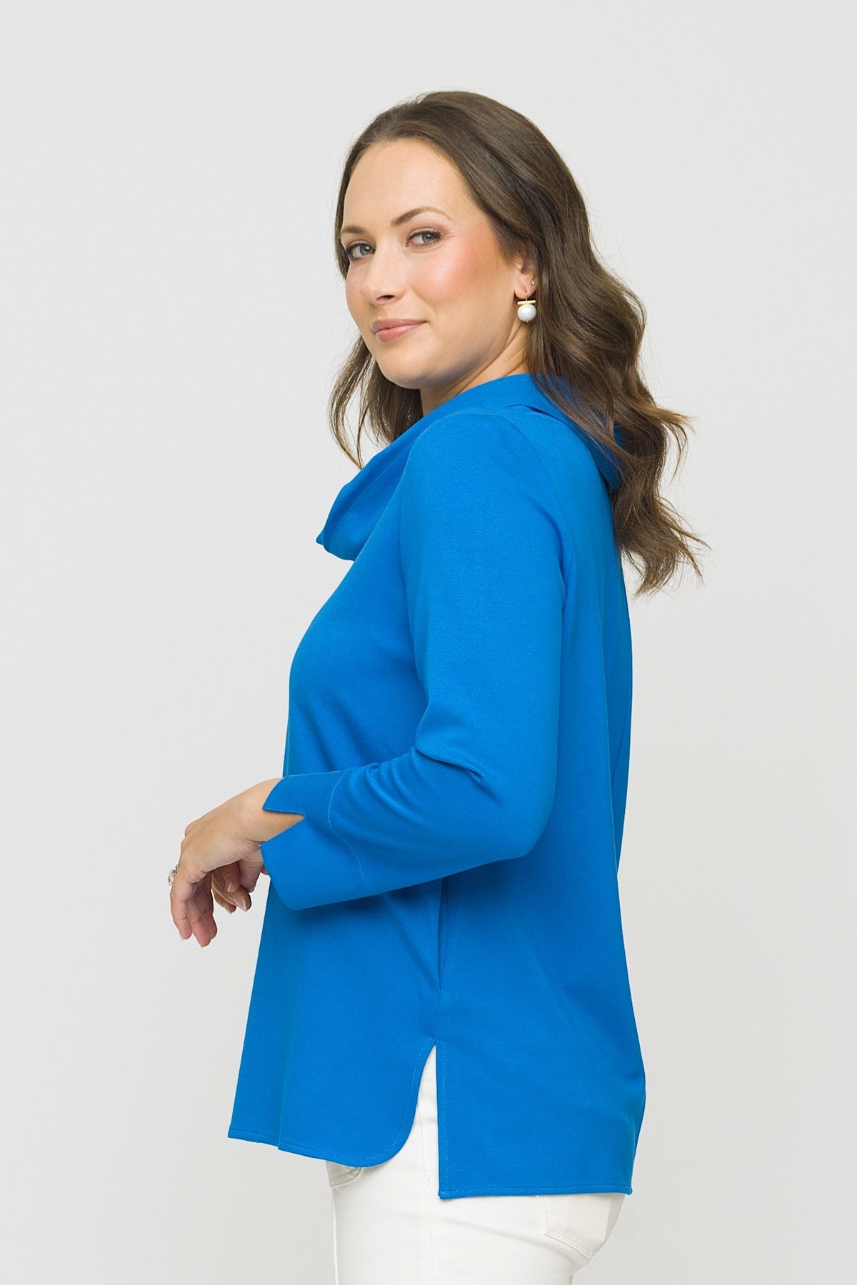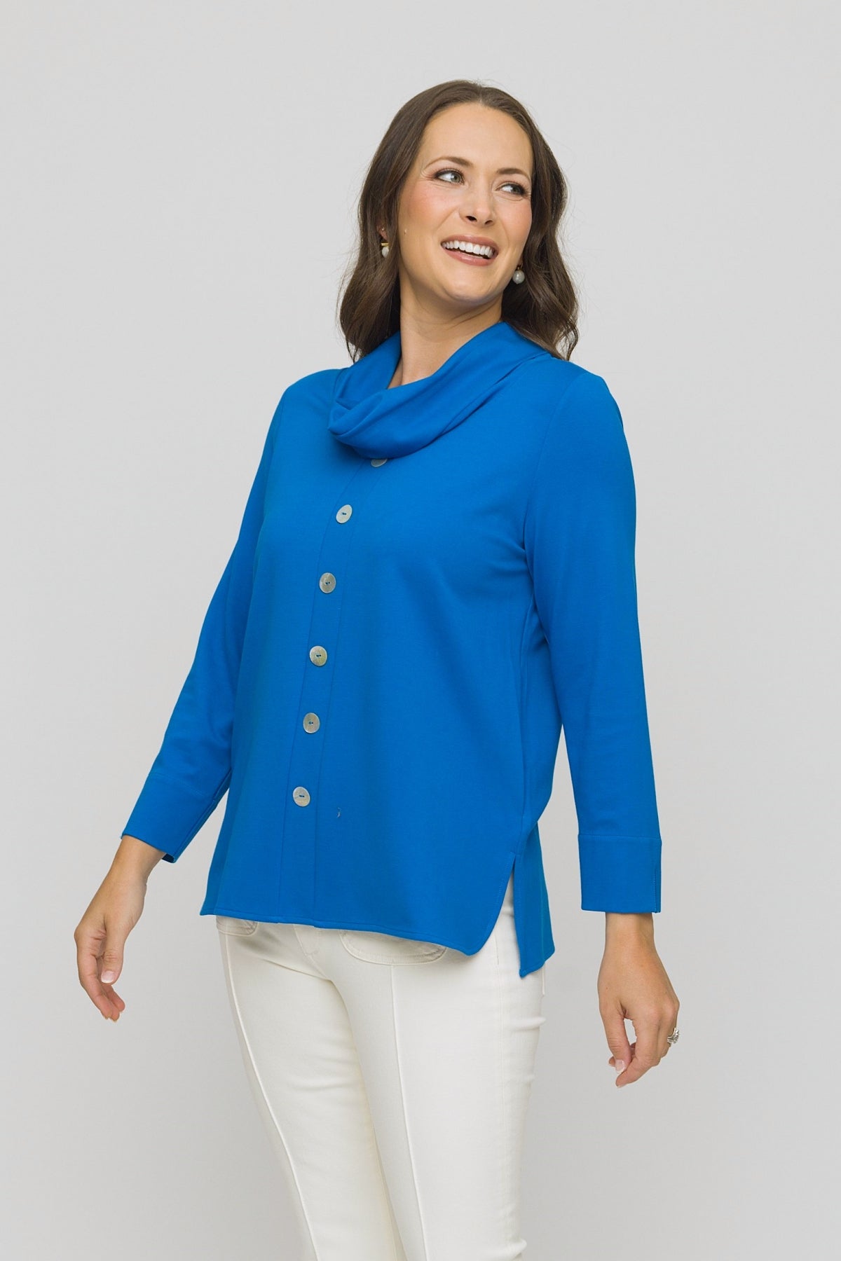 28" Cowl Neck Ponte Tunic with Shell Buttons