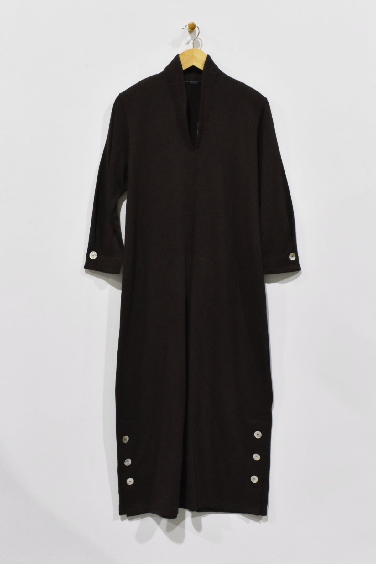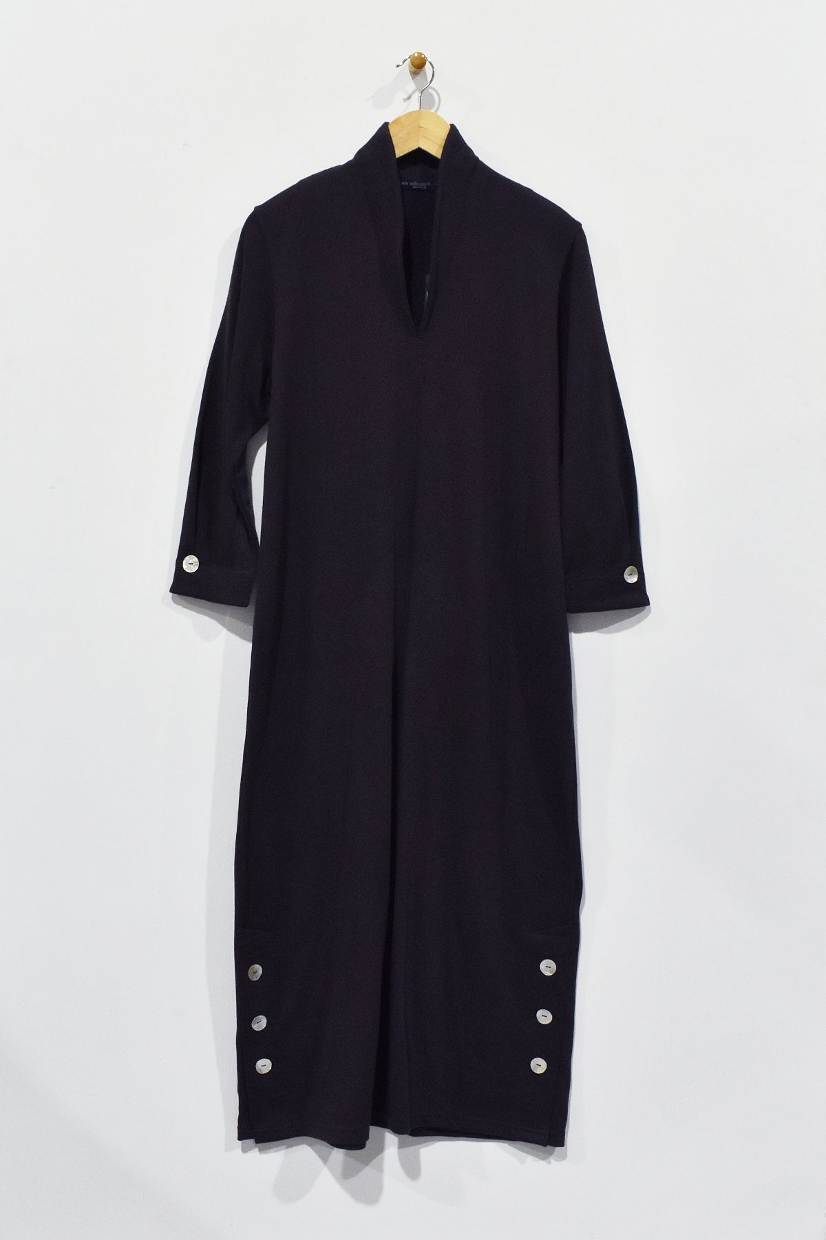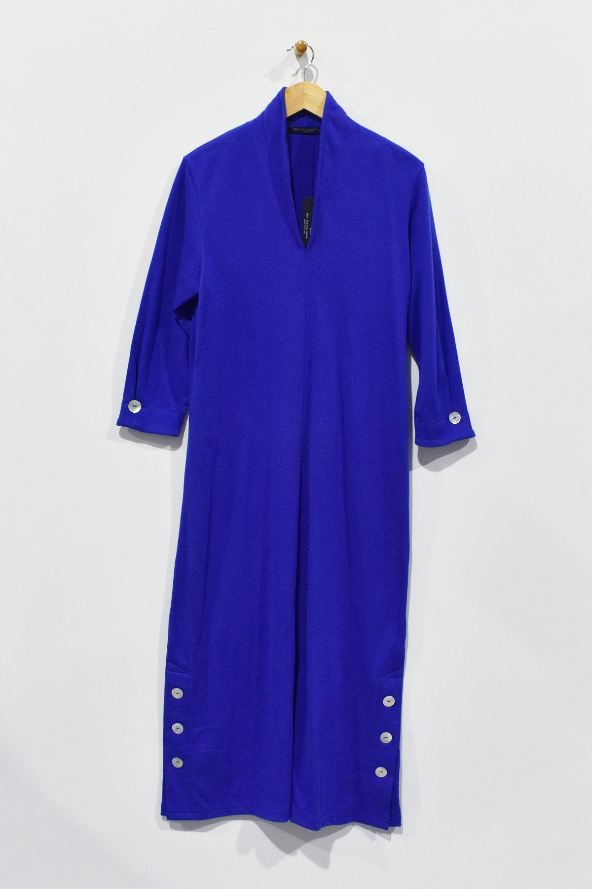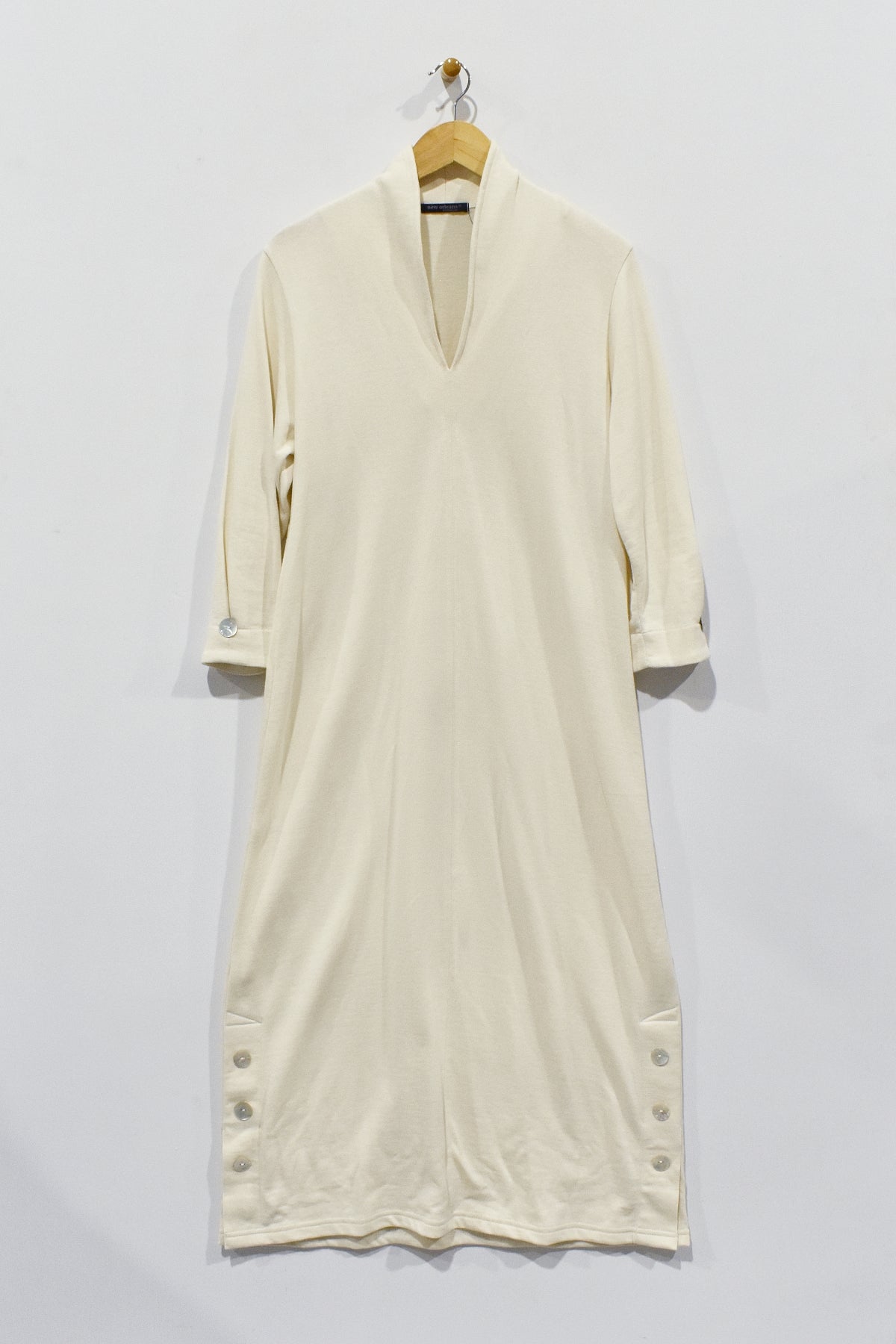 Elevate your wardrobe with our 48" Swan Neck Dress! This versatile dress features long sleeves, elegant shell buttons, and hem slits for added movement. Made with high-quality cotton in Peru, it exudes comfort and style. Perfect for any occasion, dress it up or down and feel effortlessly chic.