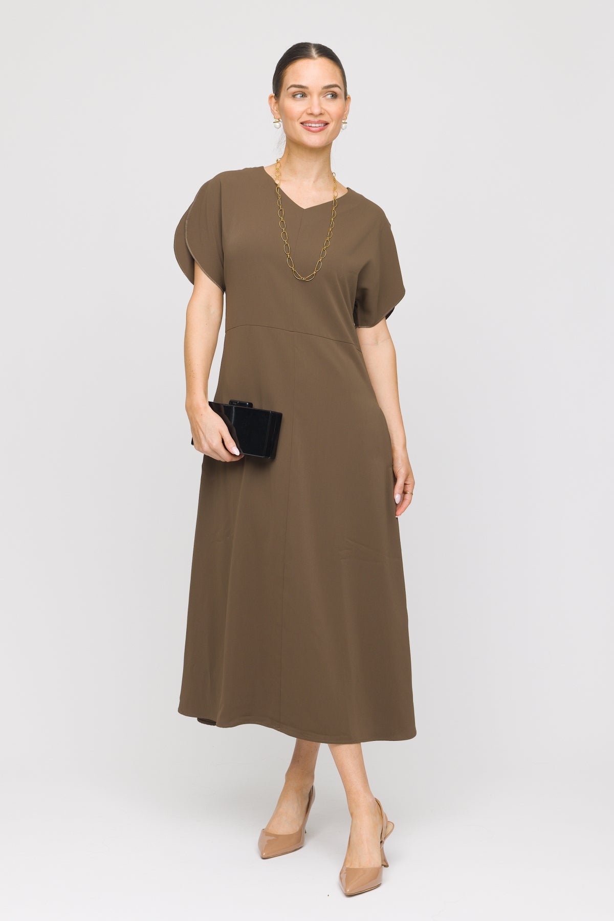 Experience effortless elegance with the 49" Petal Sleeve Empire Midi Dress. Its lightweight, flowy fabric drapes beautifully, while the flattering v-neck and fit-and-flare silhouette enhance your natural shape. Perfect for any occasion, this dress combines comfort and style with a delicate empire waist and charming petal sleeves for a graceful, feminine look.