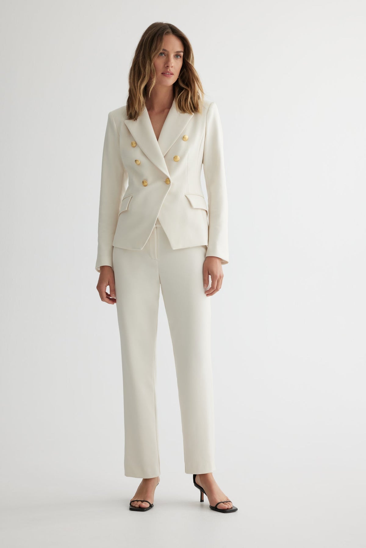 This six-button double-breasted jacket is made from one of our finest fabrics imported from Italy. Scuba is a soft, stretchy and luxurious fabric.