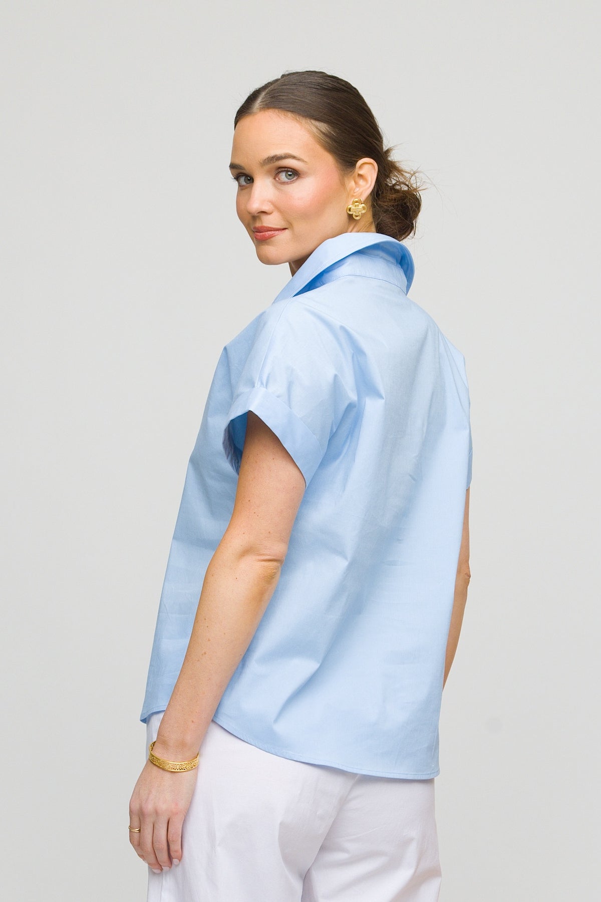 Effortlessly transition from office to weekend in this versatile pop-over top. Crafted from breathable poplin, the lightweight fabric keeps you cool and comfortable all day long. The classic short sleeves and crisp collar deliver polished sophistication, while the relaxed silhouette offers easy, everyday wearability. A wardrobe essential that works as hard as you do.