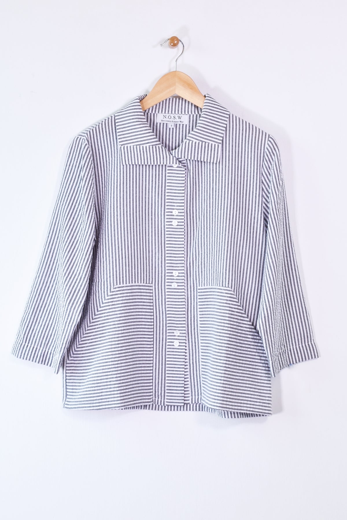 Transform your wardrobe with our 26" Double Button Shirt/Jacket! Made of lightweight cotton seersucker, this versatile piece boasts 3/4 sleeves and convenient pockets. Wear it as a blouse for a chic look or as a jacket for effortless style. Upgrade your wardrobe with this must-have piece.
