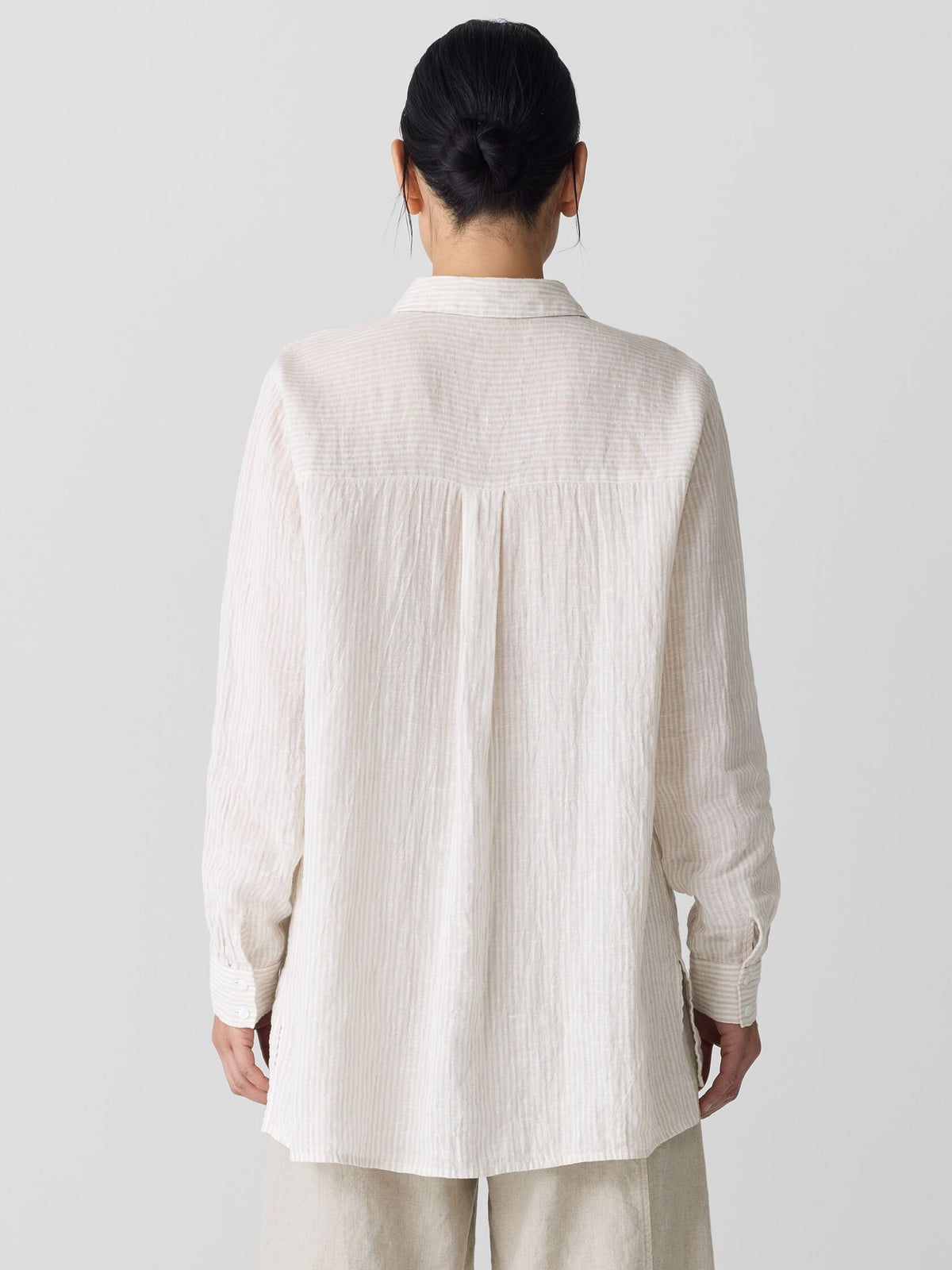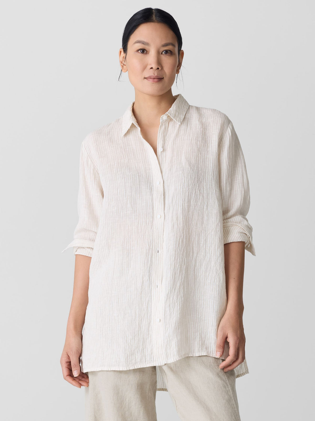 The classic collar shirt. A crisp staple in organic linen, now in a yarn-dyed stripe. Buttoned up—but never stuffy. Made in a Fair Trade Certified™ factory.