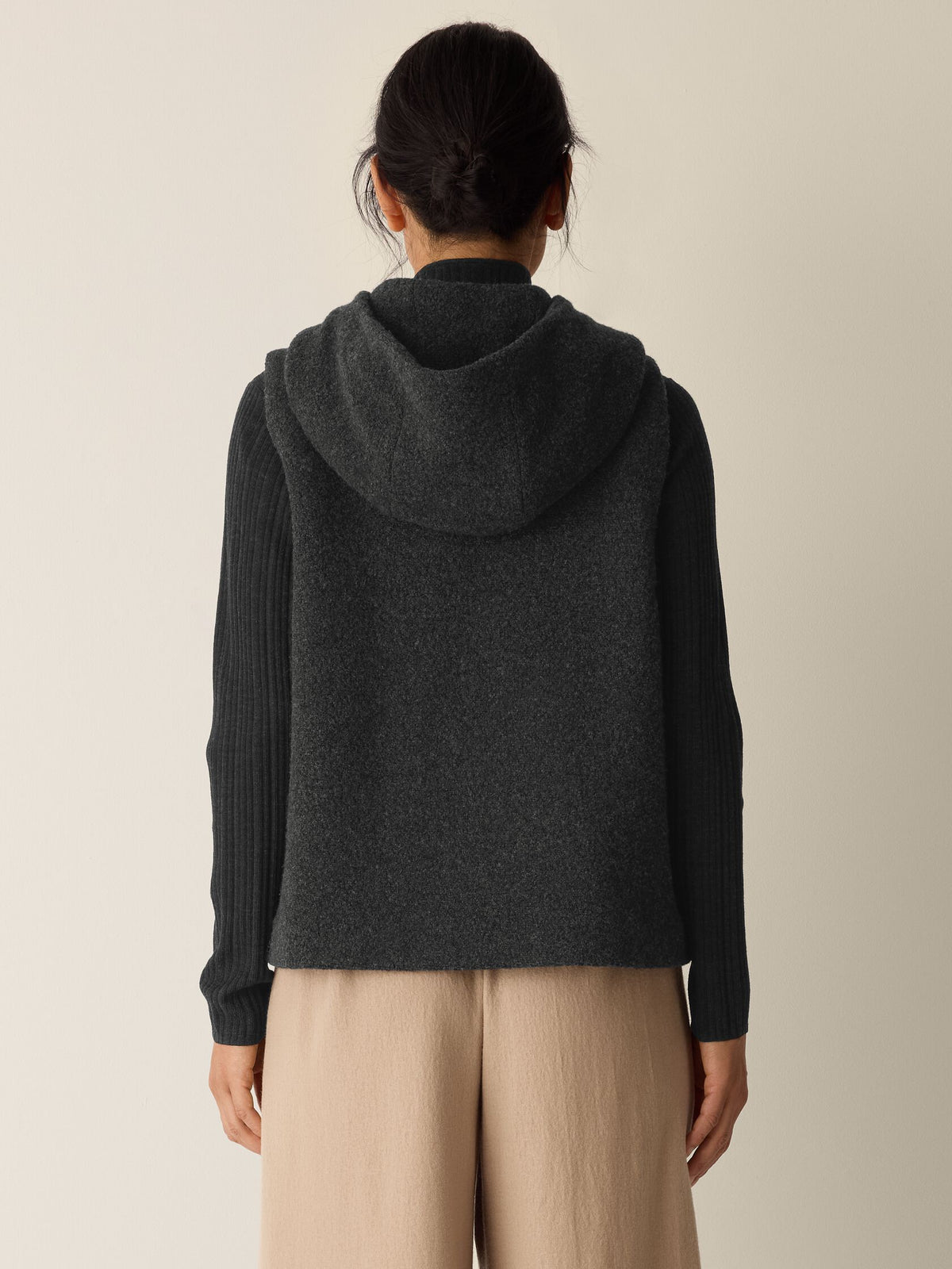 The go-to layering piece you'll reach for all season. A cozy hooded vest with snap buttons and pockets. In a soft boucle knit made from recycled wool. Made in a Fair Trade Certified™ factory.