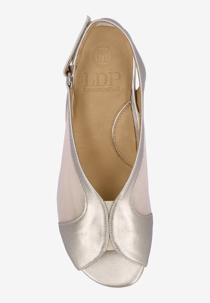 This leather/mesh sandal has a round toe, memory foam insole, leather lining and synthetic outsole. This style also features a hook and loop closure on a 1.75 inch heel.