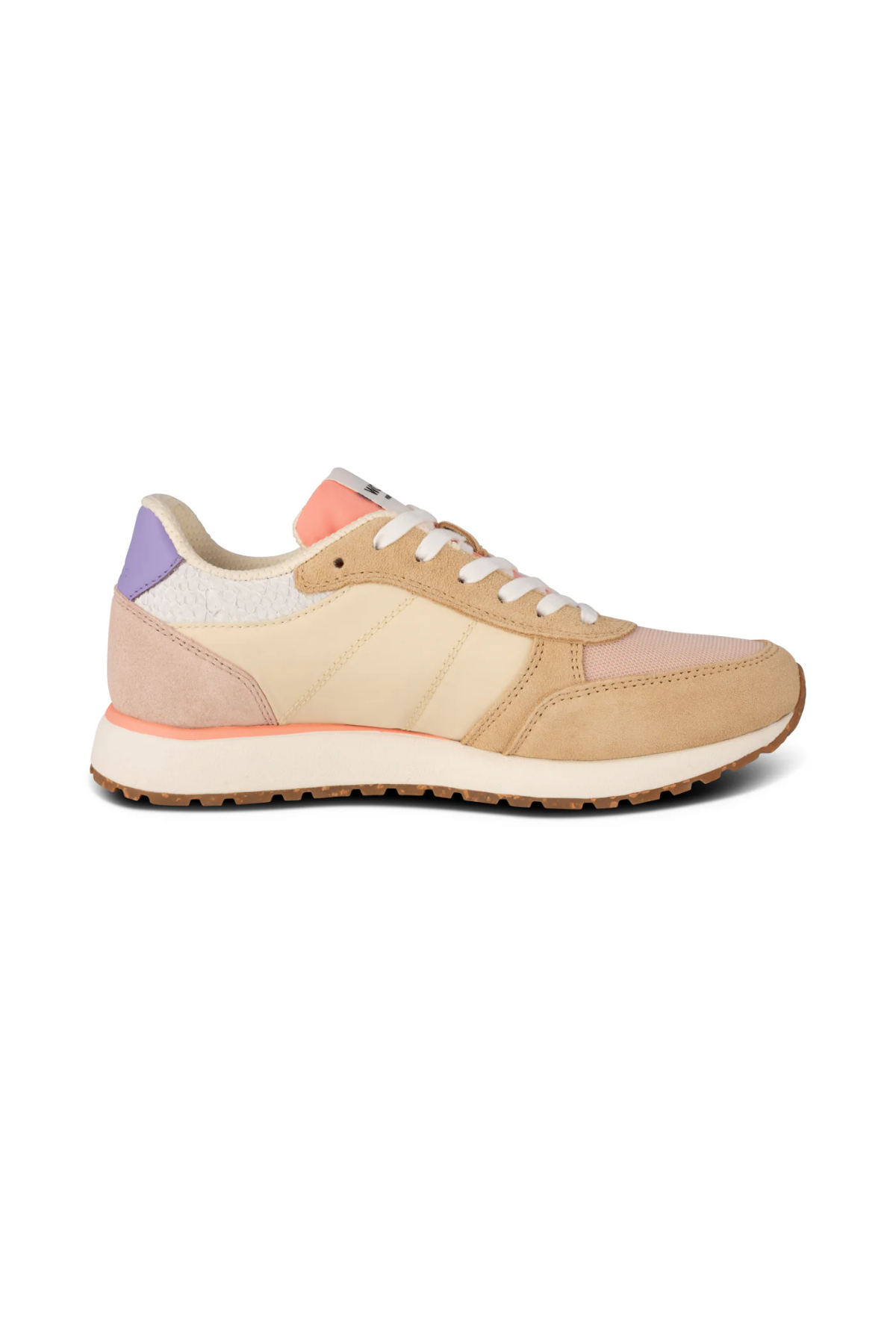 Ronja is based on an innovative design with cool color blocked details and a sporty design, crafted in leather and textile with fish leather details on the heel.