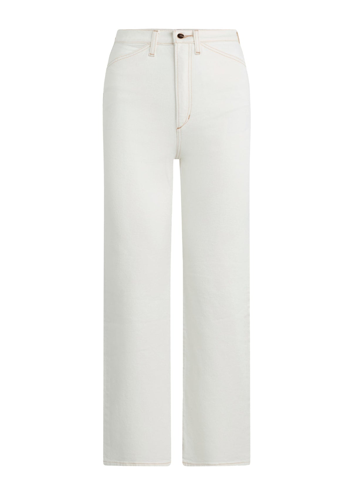 A high rise and slim fit through the waist and hip with a full-length straight leg and tailored details.